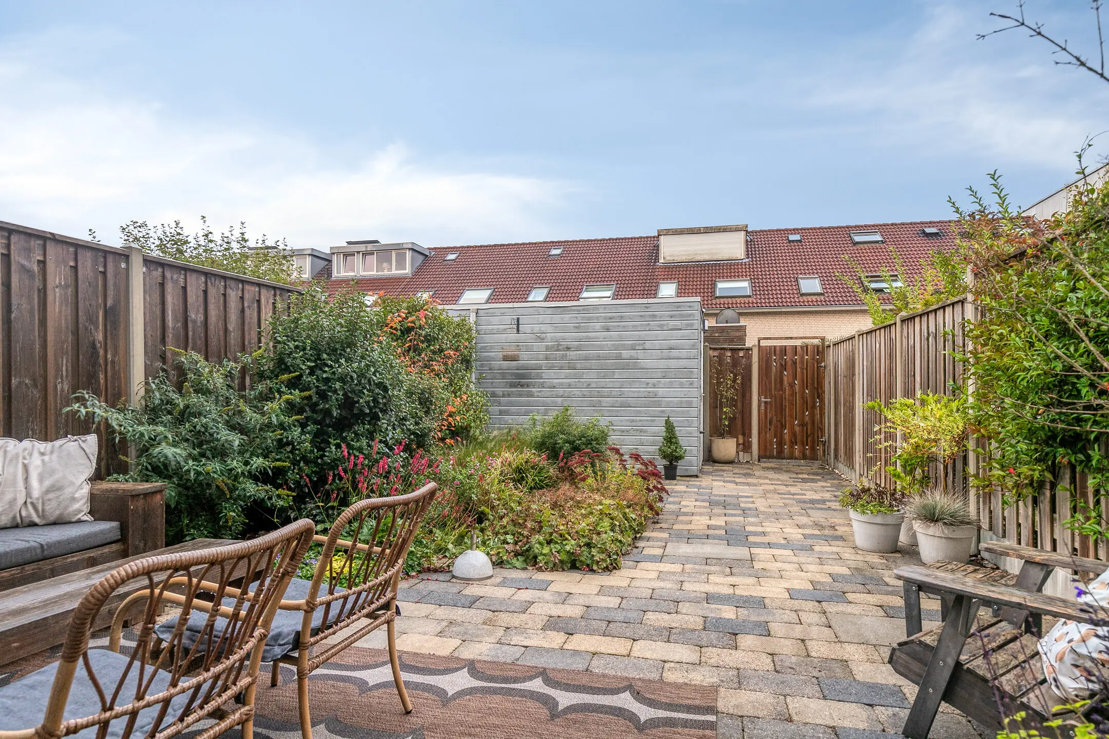 De tuinligging is gelegen op het zuidoosten. De tuin is onderhoudsarm aangelegd met een grote border voor het groen. De tegels zijn in de voor- en achtertuin professioneel gereinigd in 2025 en voorzien van een coating. Een zonnescherm zorgt voor de schaduw tijdens warme dagen. Uiteraard ontbreekt de berging en het achterom niet.